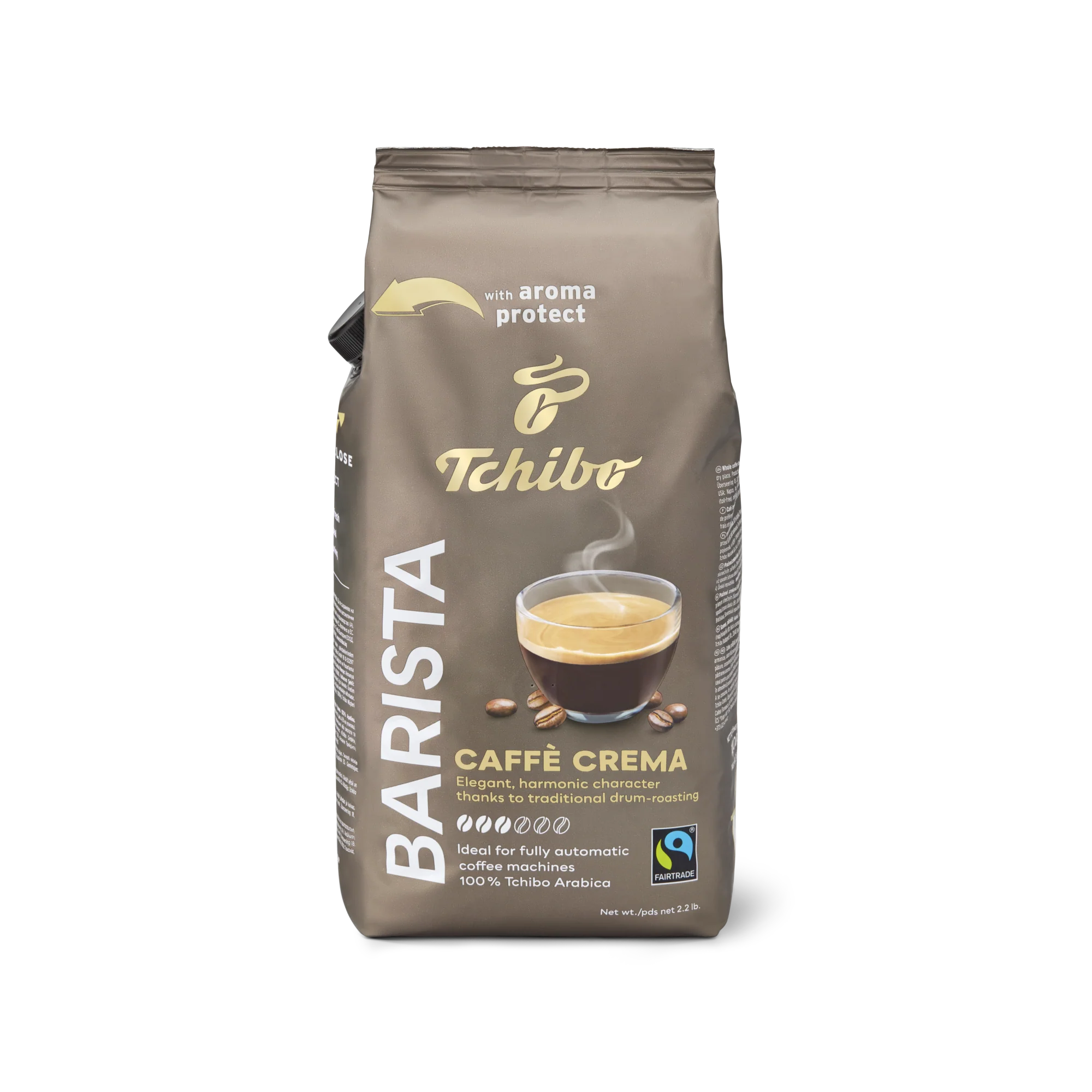 Harmonious and aromatic with subtle notes of red berries, topped by a velvety crema. Our Barista Caffè Crema beans are grown in South America and seasonally complemented with highland beans from Latin America. To achieve its authentic taste, the very best Tchibo Arabica beans are gently and slowly roasted in a traditional drum roaster to develop their aroma. You will experience unlimited joy at home-whether drinking a Caffè Crema, Cafe au Lait, or Macchiato. Simply delicious!