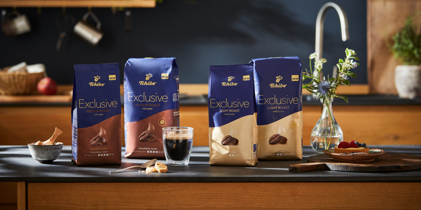 Tchibo Exclusive is made for those who treasure the finest coffee. Immerse yourself in its rich and distinct aroma during precious moments of togetherness. The coffee beans are from the best coffee-growing regions, the coffee is produced in Europe.